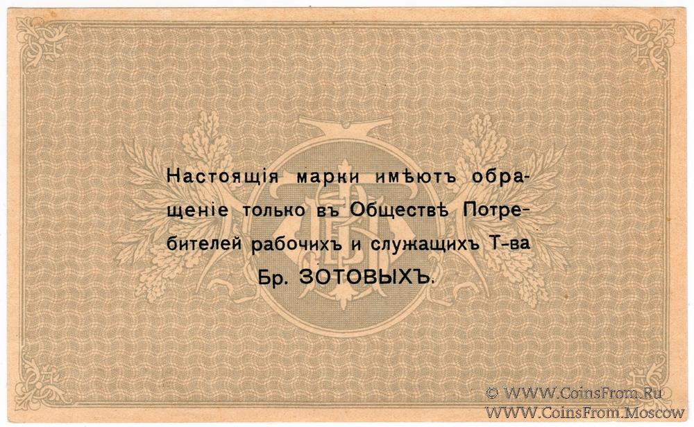 Марка без даты. Реверс серый. Общество потребителей рабочих и служащих т-ва Братьев Зотовых.