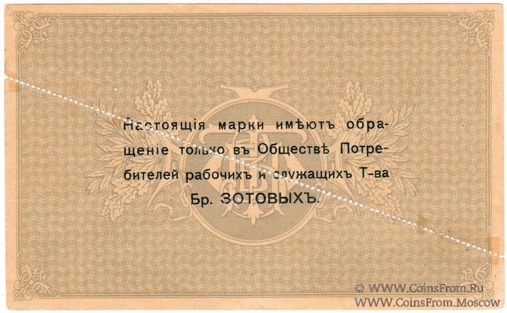 Демонстрационный образец: подобная перфорация использовалась как признак отсутствия платежеспособности знака.