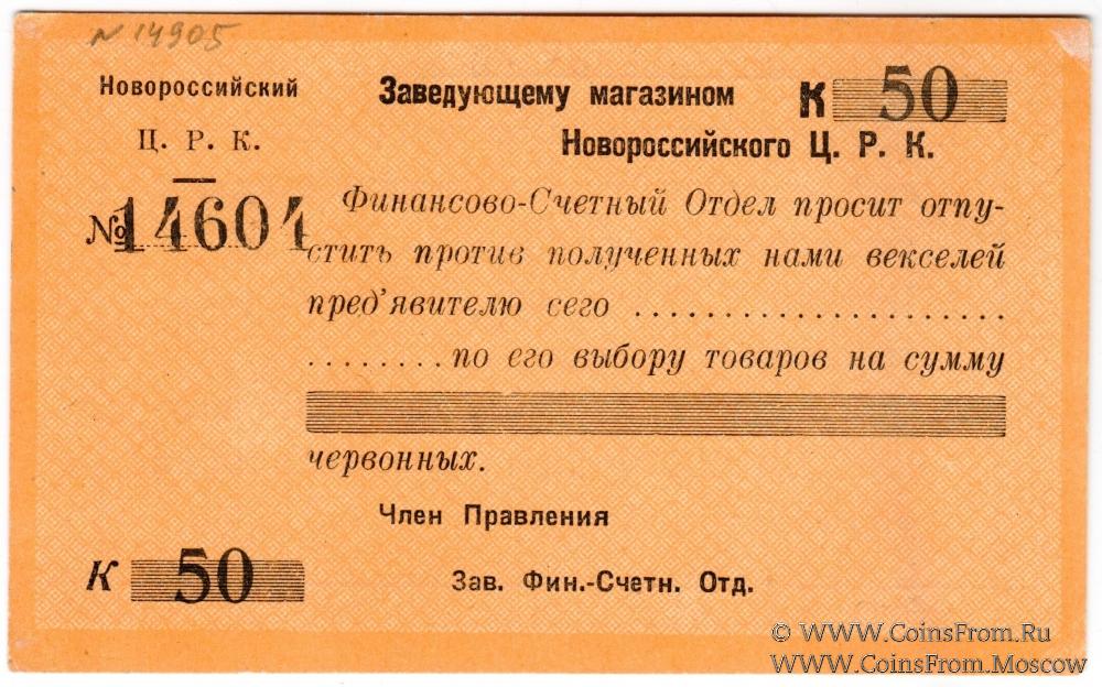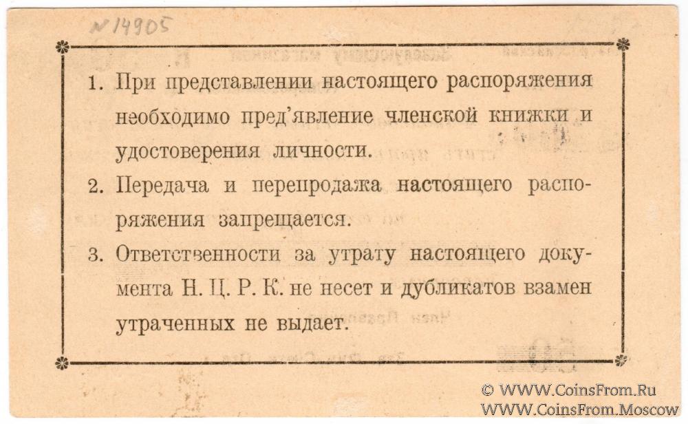 Бланк без даты. Оранжевый цвет. Распоряжение заведующему магазином. Новороссийский Центральный Рабочий Кооператив.