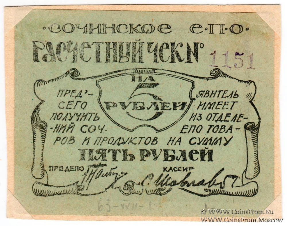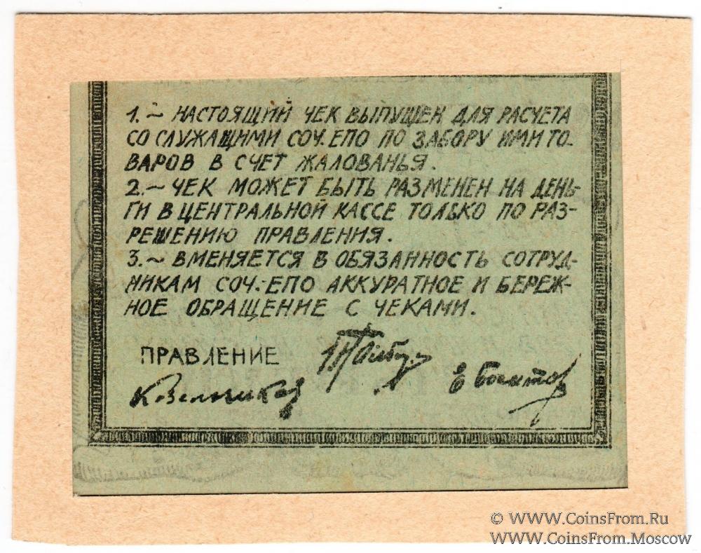 Расчетный чек без даты. Сочинское Единое потребительское общество (Сочинское Е.П.О.).