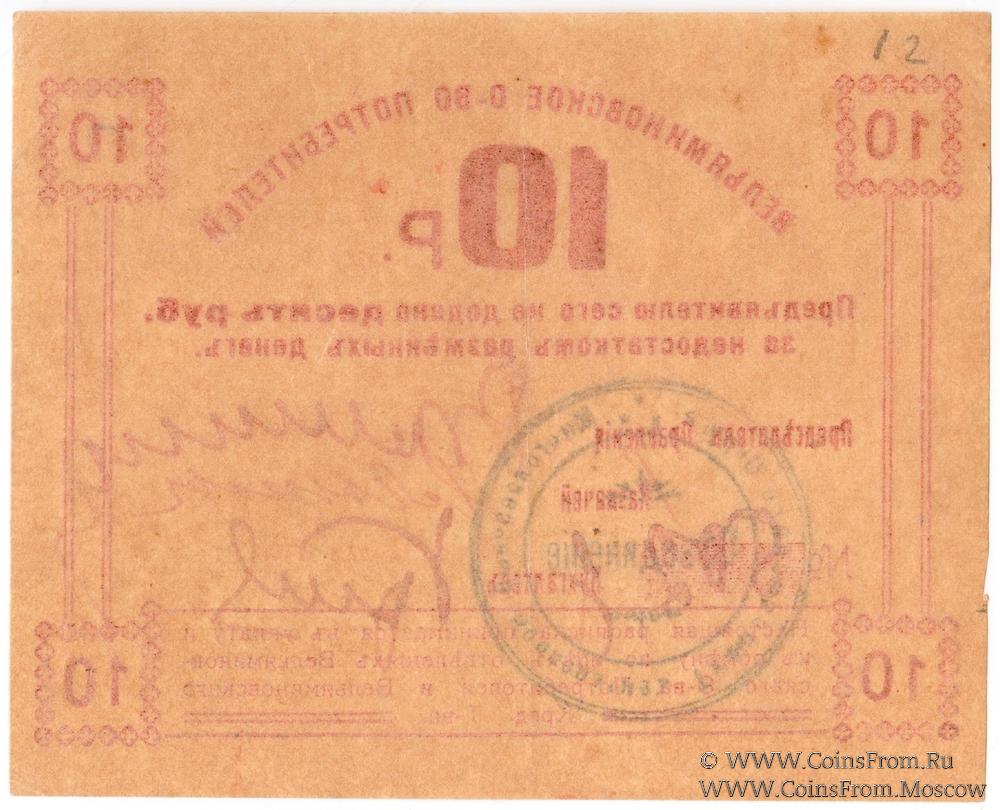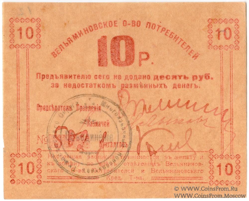 Расписка без даты. Цифры номинала в квадратах. Вельяминовское Общество Потребителей.