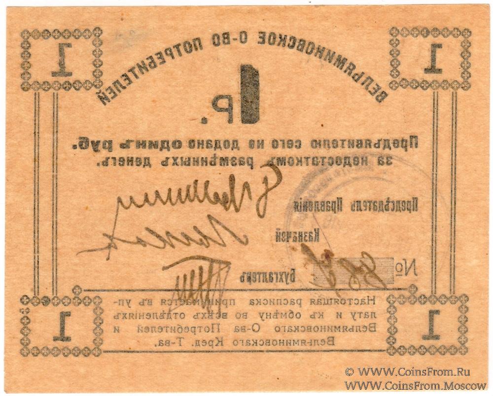 Расписка без даты. Цифры номинала в прямоугольниках. Вельяминовское Общество Потребителей.