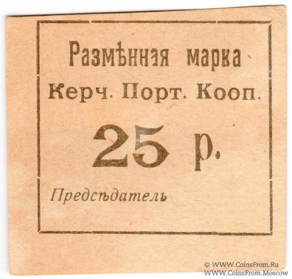 Разменная марка без даты. Бланк. Керченский Портовой Кооператив.