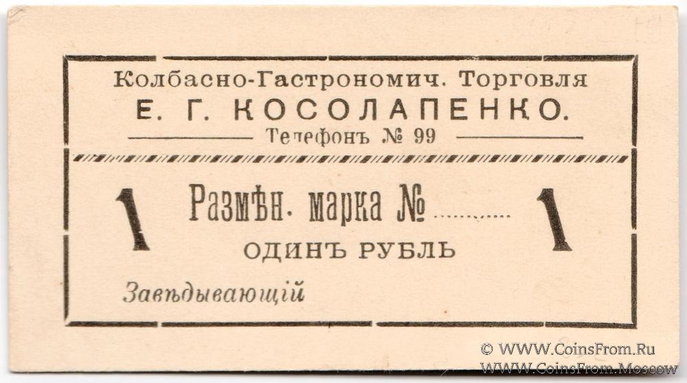 Разменная марка без даты. Бланк. Колбасно-гастрономическая торговля Е.Г.Косолапенко.