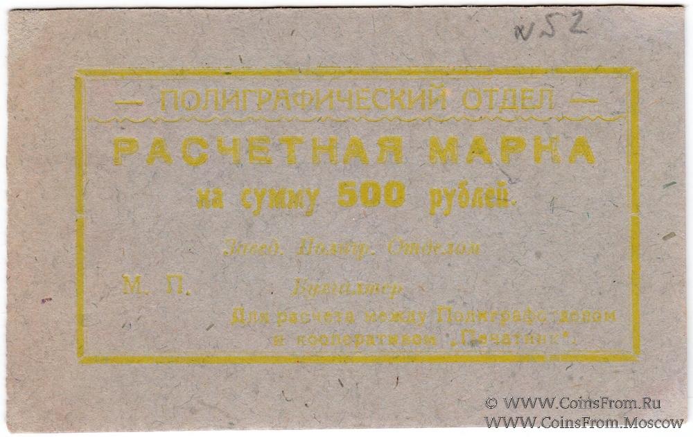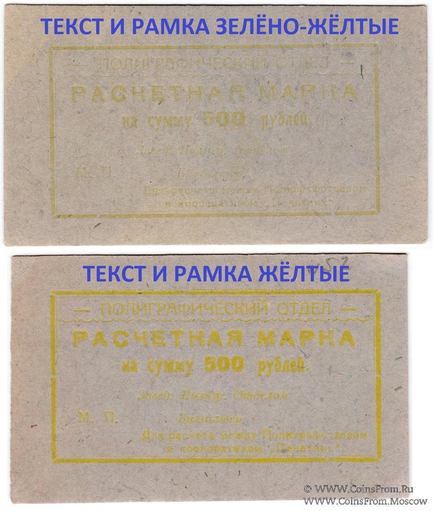Расчетная марка без даты (1923 г.). Бланк. Рамка и текст жёлтые. Полиграфический отдел. Кооператив "Печатник".