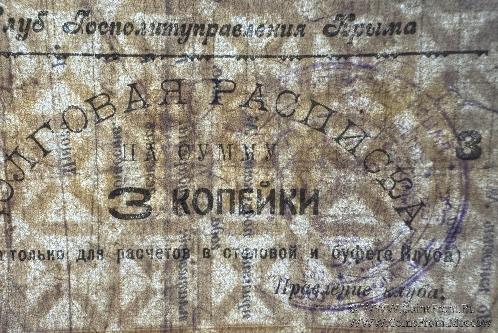 Долговая расписка без даты. Второй выпуск. На листках паспортных книжек. Коричневая. Водяной знак. Клуб Госполитуправления Крыма.