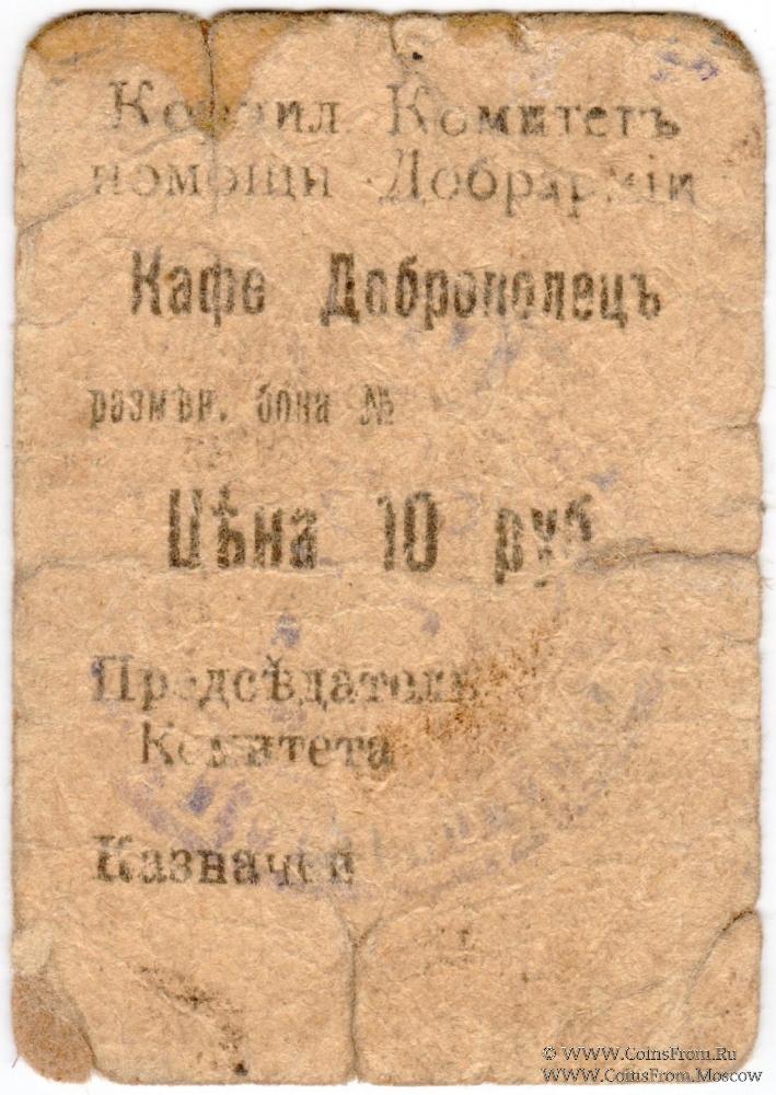 Разменная бона без даты (1920 г.). Корниловский Комитет помощи Добрармии. Кафе Доброволец.