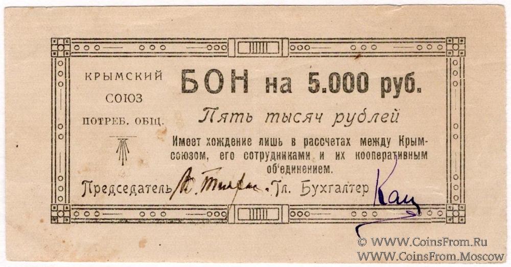 Бон без даты (1921 г.). Бланк. Крымский союз потребительских обществ.