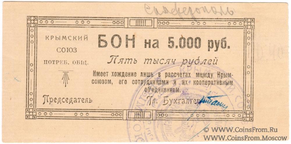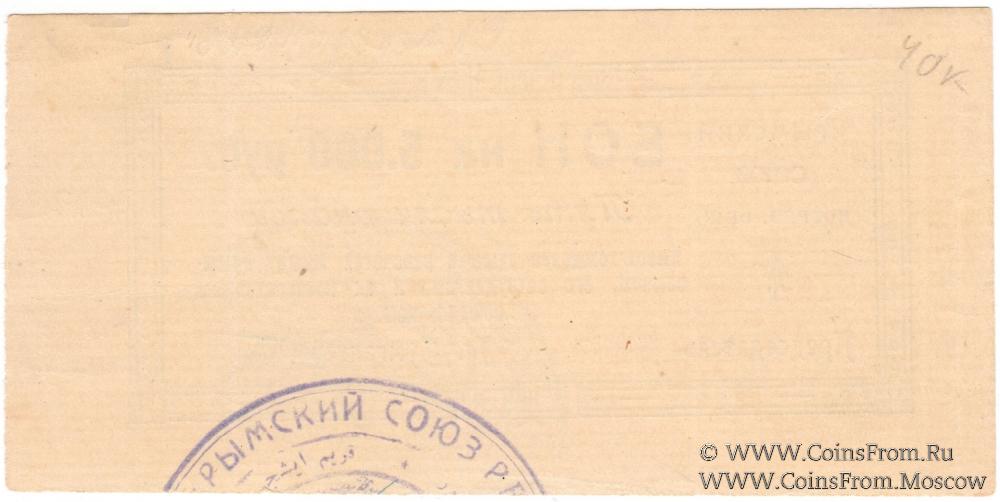 Бон без даты (1921 г.). Печать (44 мм) и подписи на аверсе. Печать на реверсе. Крымский союз потребительских обществ.