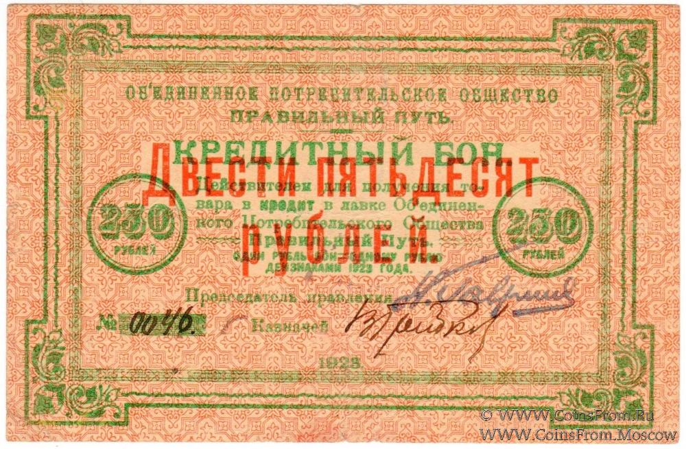 Кредитный бон. Подпись: Гаврилов (председатель правления). Объединенное Потребительское Общество "Правильный путь".
