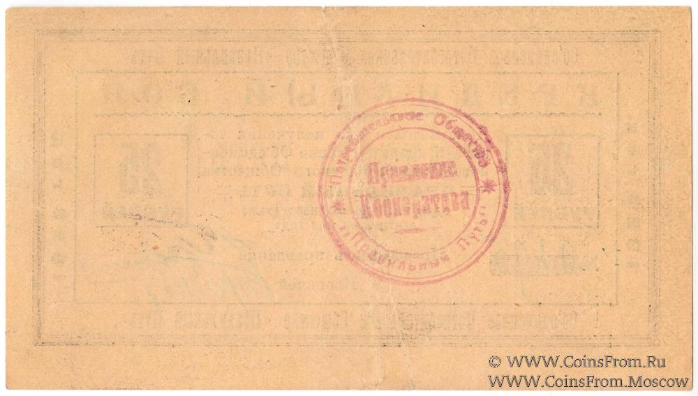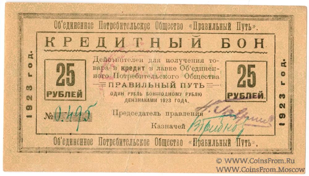 Кредитный бон. Номер и подпись Казначея зеленые от руки. Объединенное потребительское общество "Правильный путь".