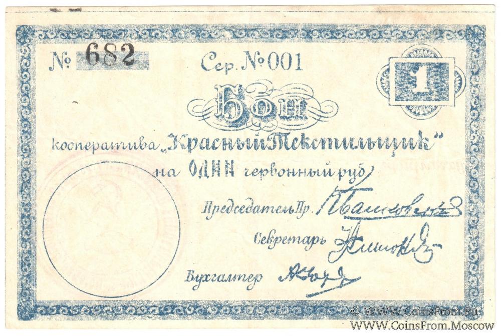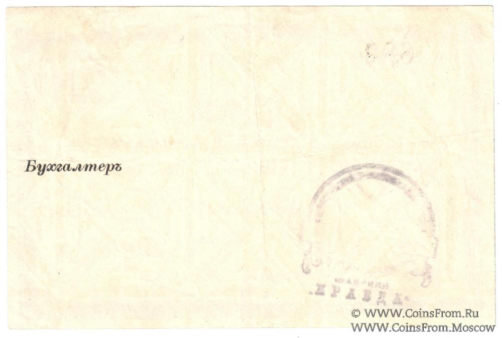 Печать на аверсе Кооператива "Красный текстильщик". Печать на реверсе Фабрики "Правда". Вторичное использование (на реверсе надпечатка "Бухгалтеръ").
