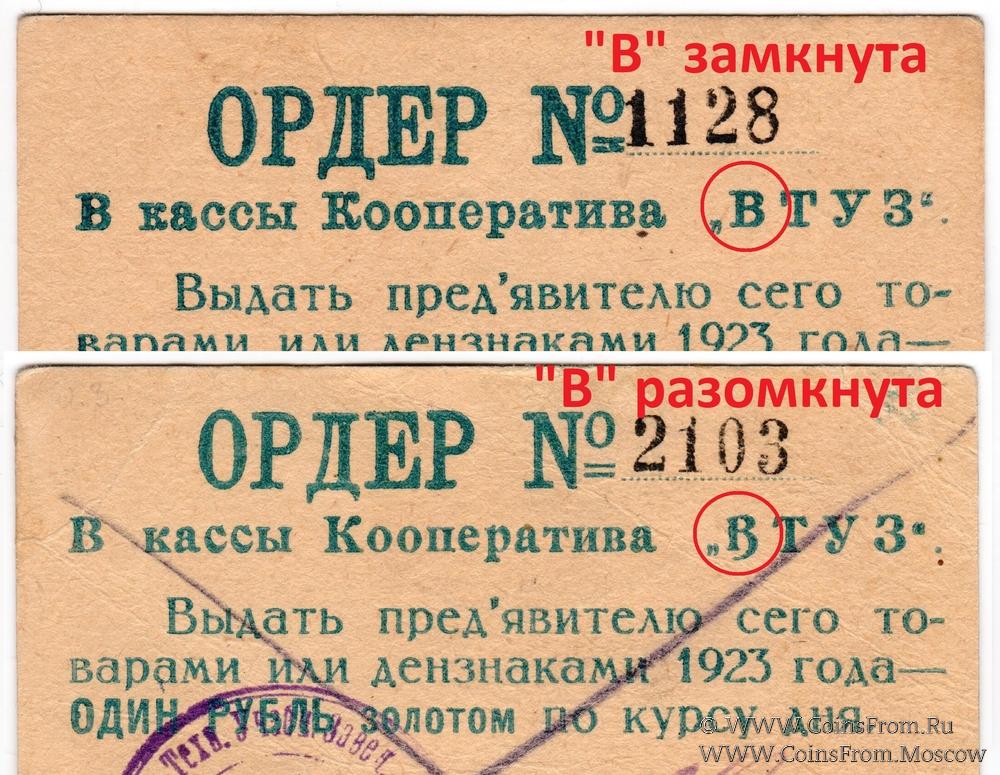 Ордер в рублях золотом 1924 г. Буква "В" в слове "ВТУЗ" замкнута.