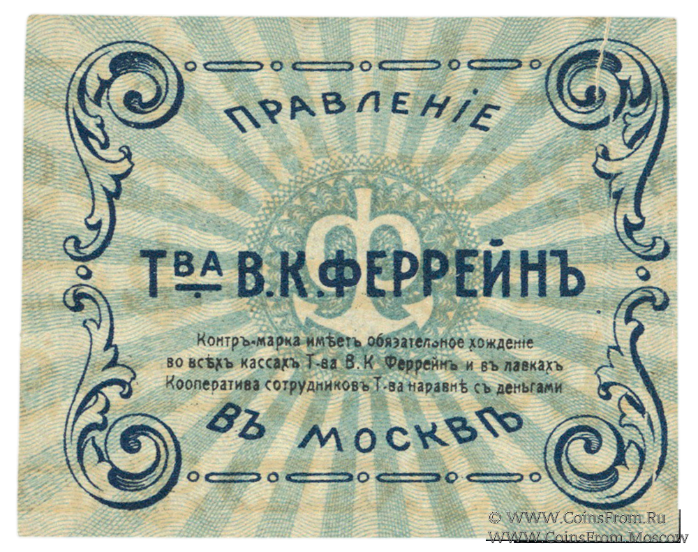 Контрольная марка без даты. Правление Товарищества В.К. Феррейн в Москве.