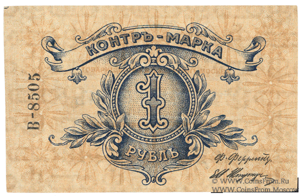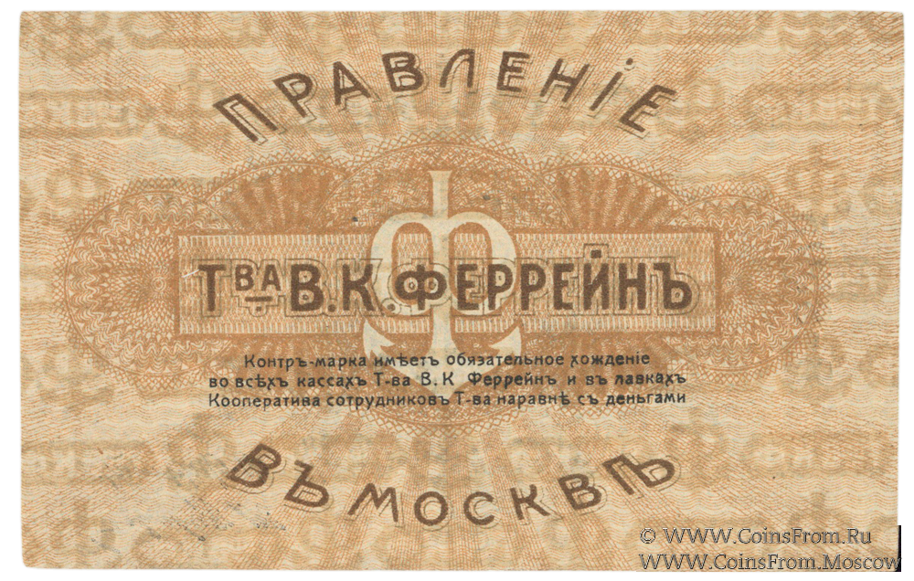 Контрольная марка без даты. Серия В. Правление Товарищества В.К. Феррейн в Москве.