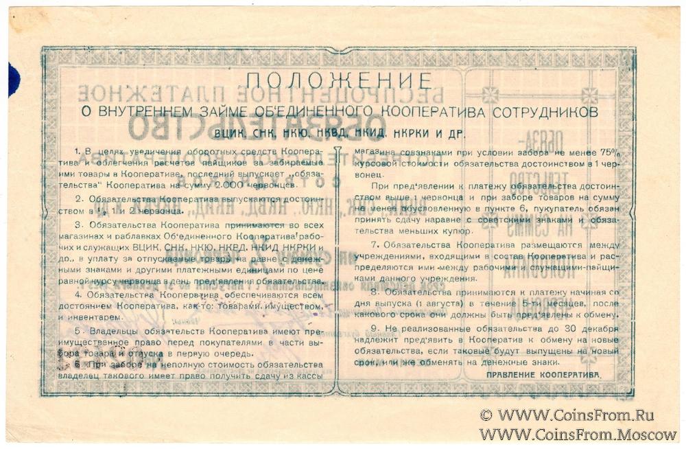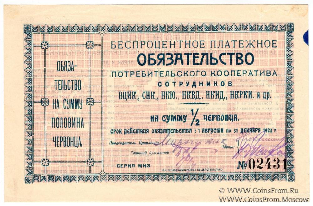 Беспроцентное платежное обязательство. Без печати. Бумага белая. Потребительский кооператив сотрудников ВЦИК, СНК, НКЮ, НКВД, НКИД, НКРКИ и др.