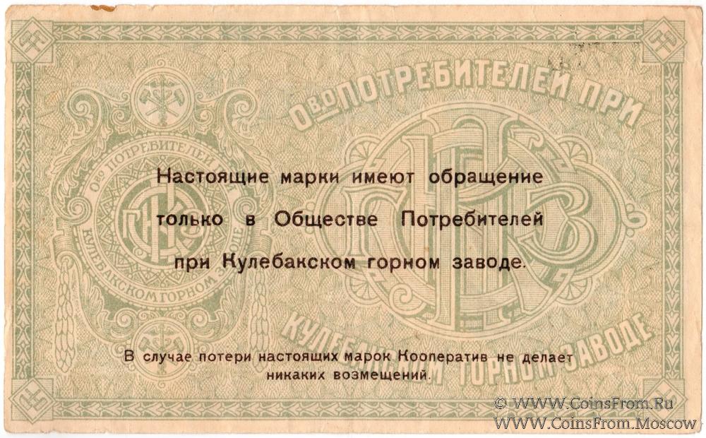 Марка без даты. Номер 5-значный. Общество потребителей при Кулебакском горном заводе.