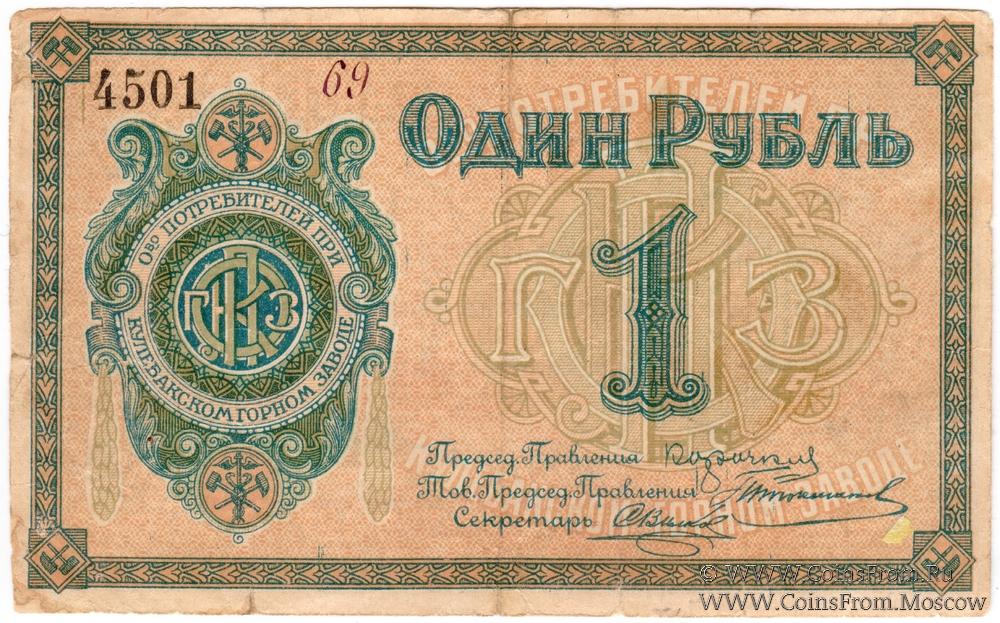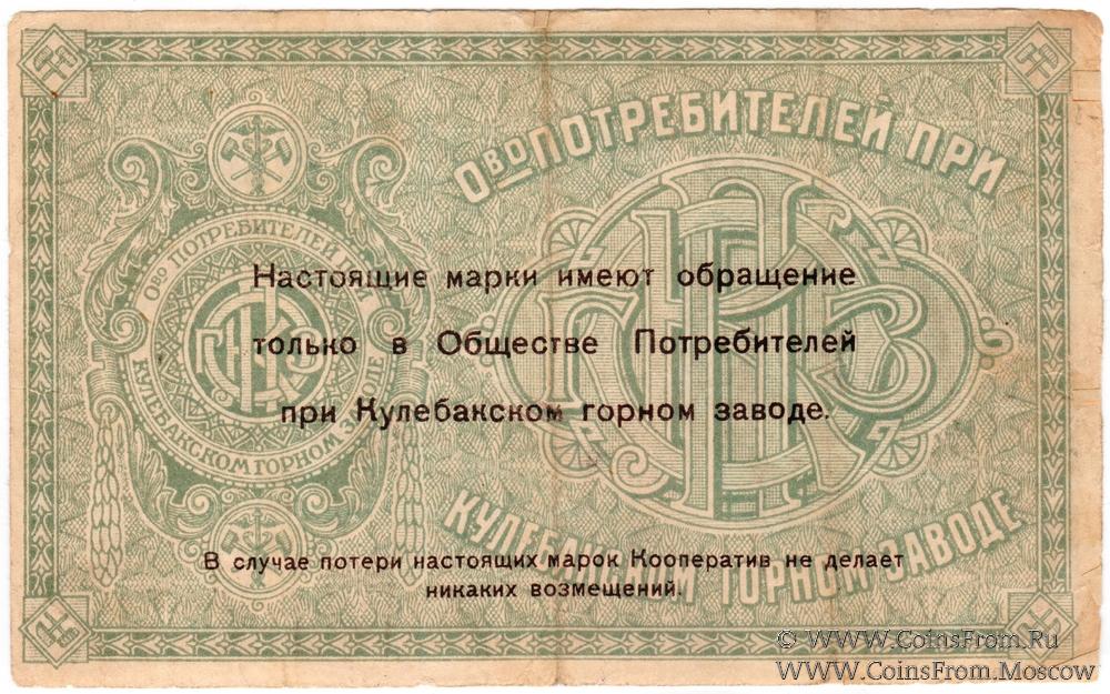 Марка без даты. Номер 4-значный. Надпечатка "69". Общество потребителей при Кулебакском горном заводе.