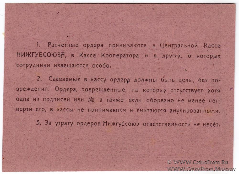 Разменный ордер. Серия Д. Нижегородский Губернский Союз Потребительских Обществ.
