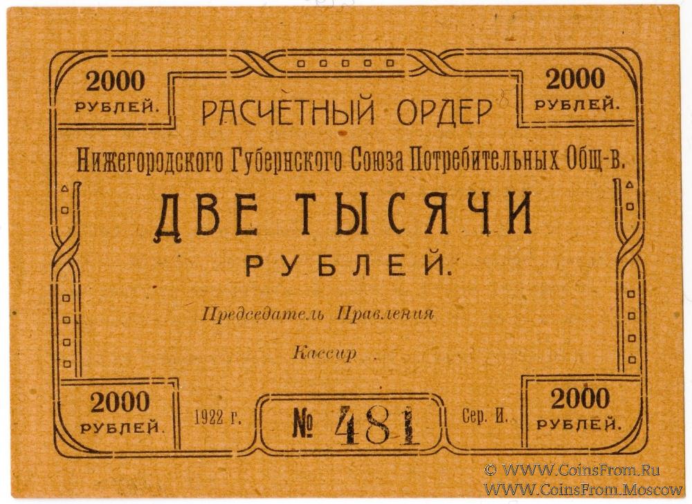Разменный ордер. Серия И. Нижегородский Губернский Союз Потребительских Обществ.