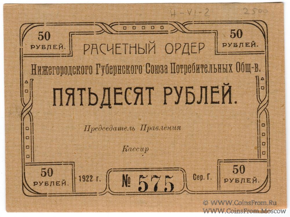 Разменный ордер. Серия Г. Нижегородский Губернский Союз Потребительских Обществ.
