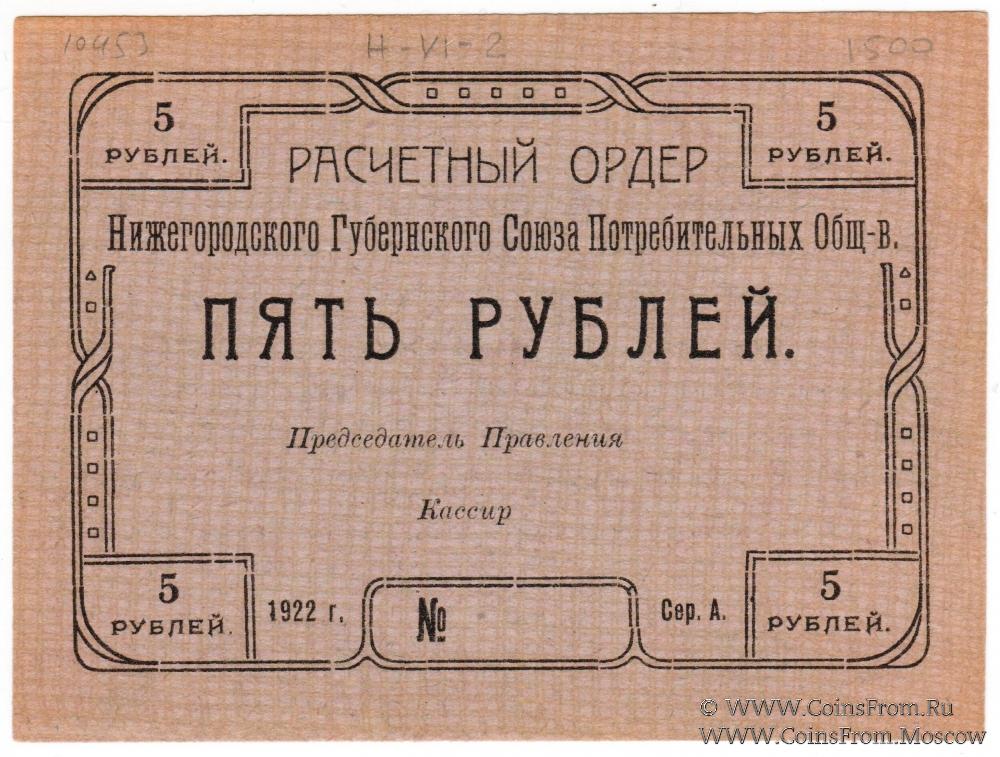 Разменный ордер. Серия А. Без номера. Нижегородский Губернский Союз Потребительских Обществ.