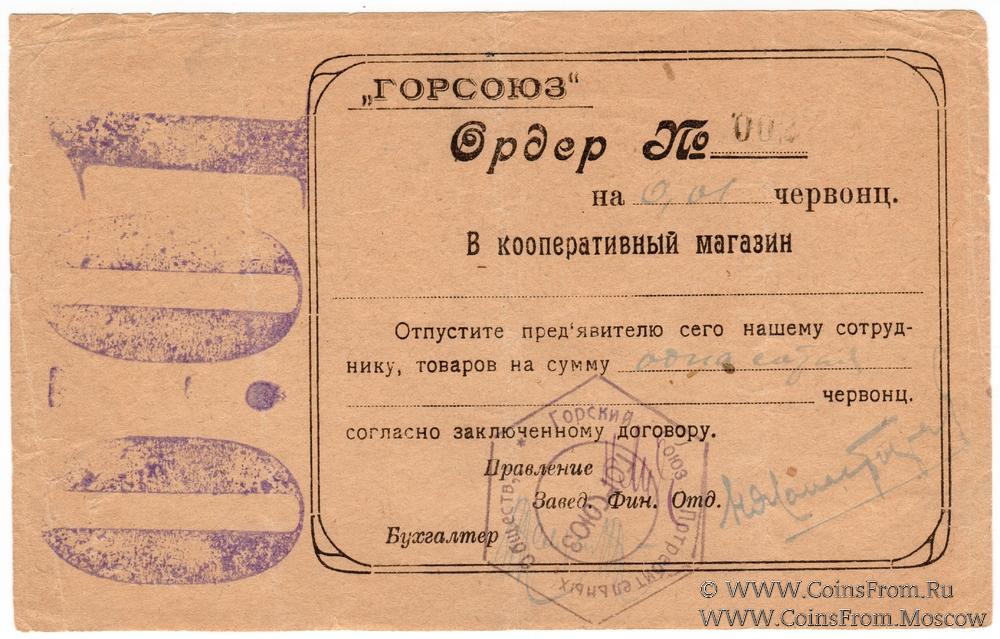 Ордер. Горский Союз потребительских обществ "ГОРСОЮЗ".