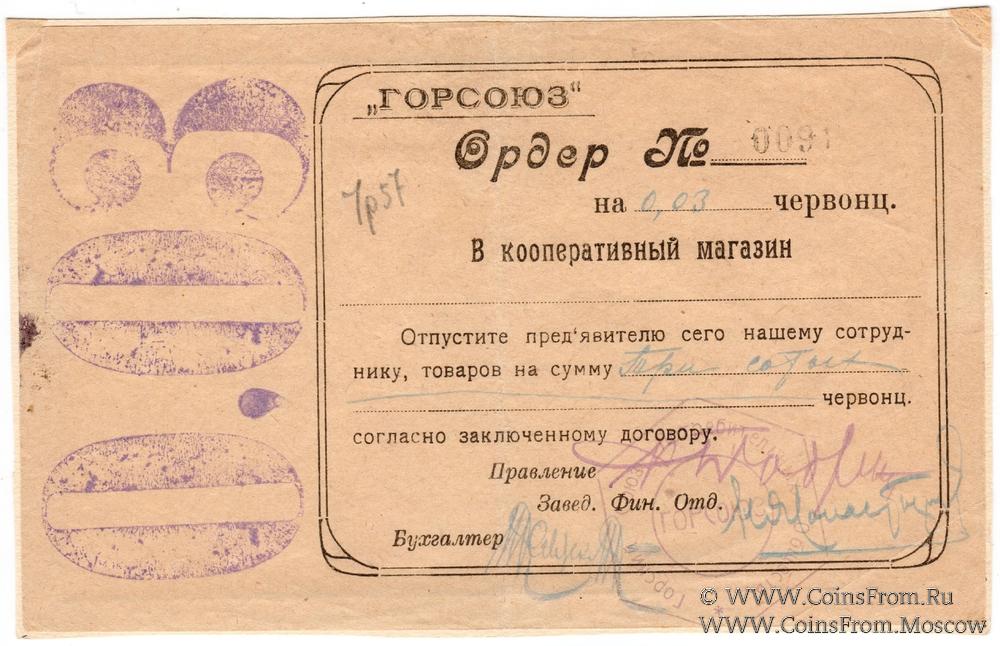 Ордер. Горский Союз потребительских обществ "ГОРСОЮЗ".