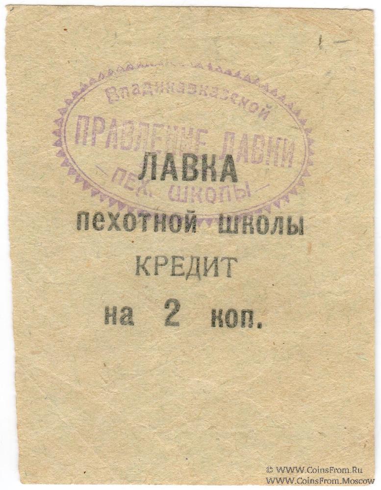 Овальная печать: "ПРАВЛЕНИЕ ЛАВКИ" (по центру) / "Владикавказской пех.школы" (по кругу).