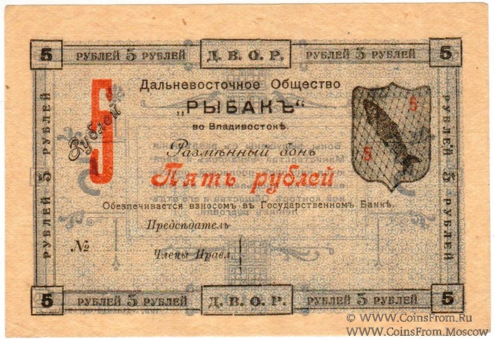 Разменный бон. Бланк. Дальневосточное Общество "РЫБАКЪ" (Д.В.О.Р.) во Владивостоке.