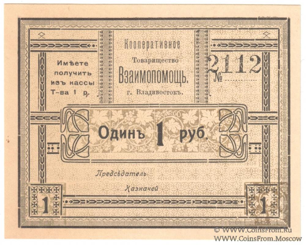 Бланк. Кооперативное товарищество "Взаимопомощь".