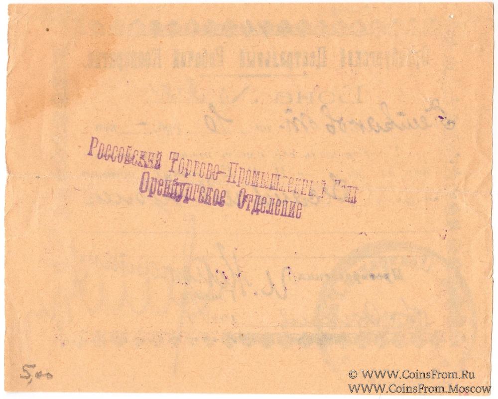 Штамп на реверсе: "Российский Торгово-Промышленный Банк" / "Оренбургское Отделение" (в две строки).