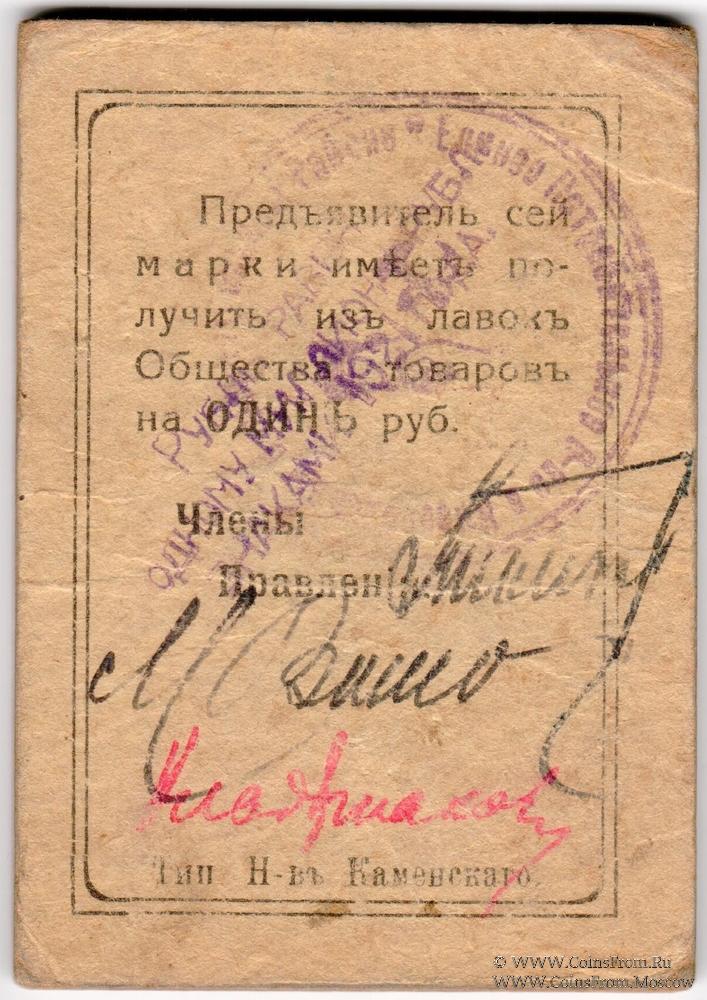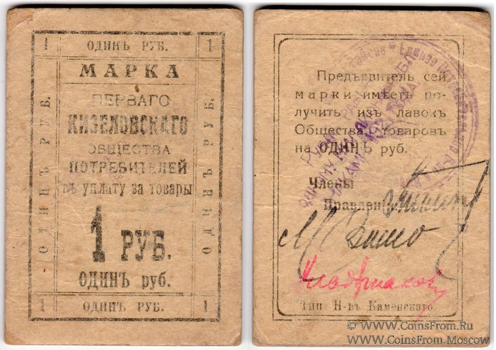 Марка. Толстый картон. Надпечатка на реверсе. Первое Кизеловское Общество Потребителей.