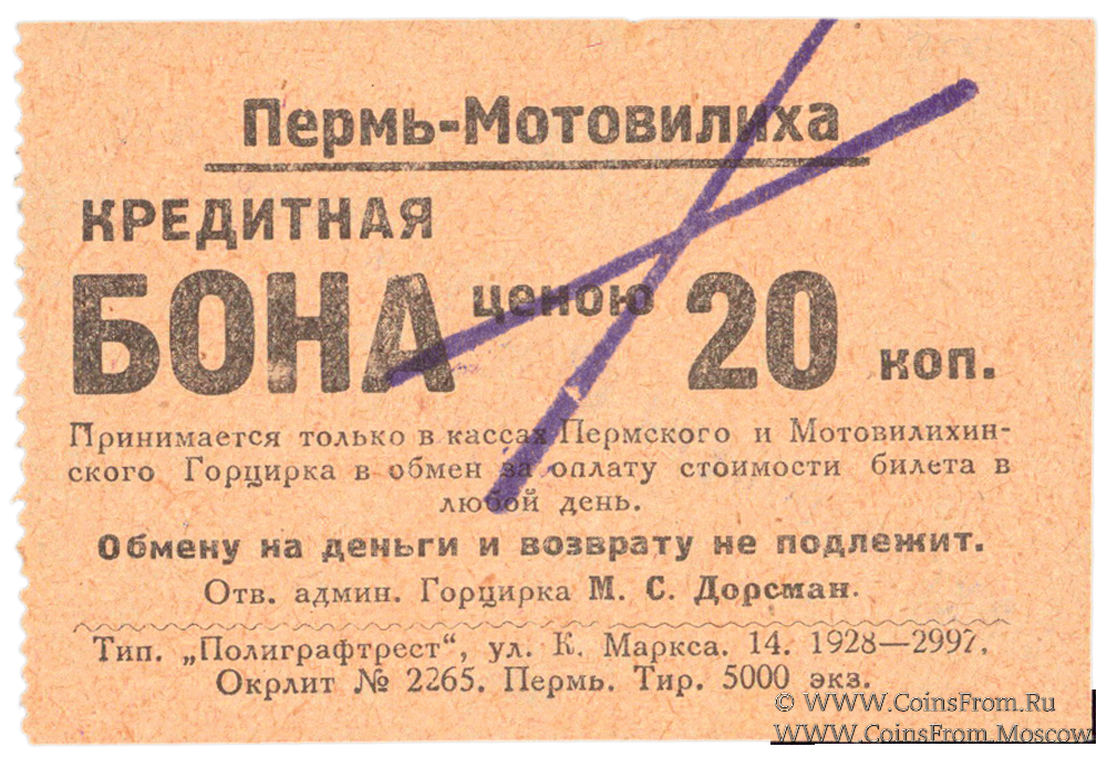 20 копеек 1928 г. (Пермь - Мотовилиха)