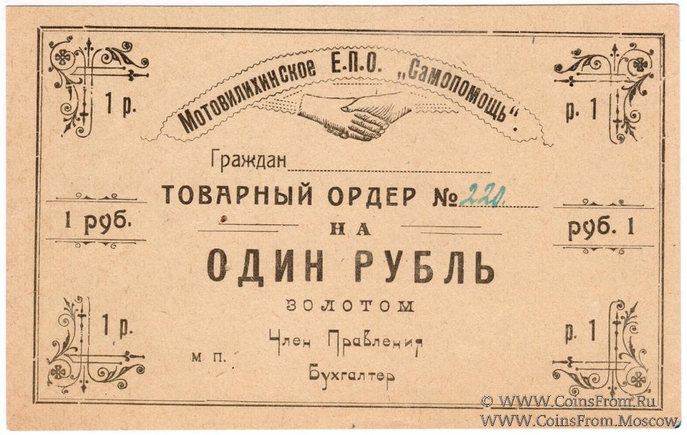 Товарный ордер золотом без даты (1923 г.). Мотовилихское Единое Общество Потребителей "САМОПОМОЩЬ".