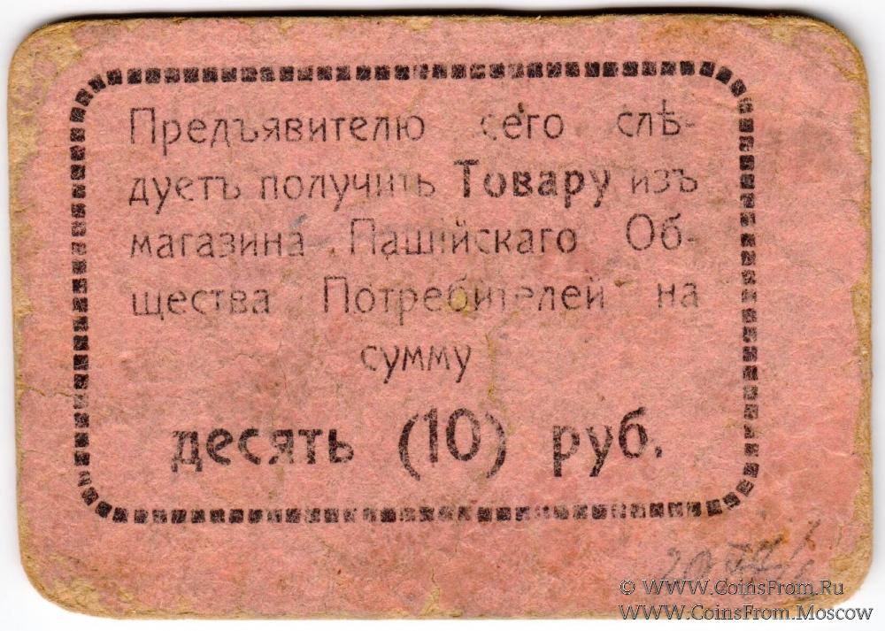 Без названия без даты (1918 г.). Рамка простая (из точек). Печать и подпись на реверсе. Пашийское Общество потребителей.