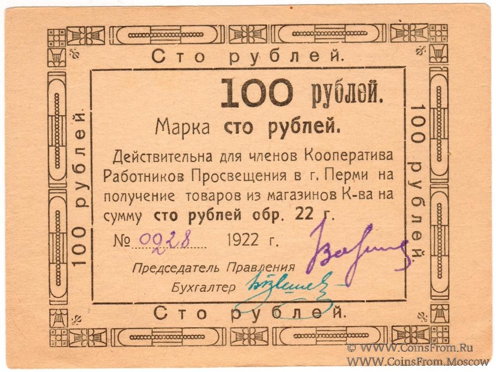 100 рублей 1922 г. (Пермь)
