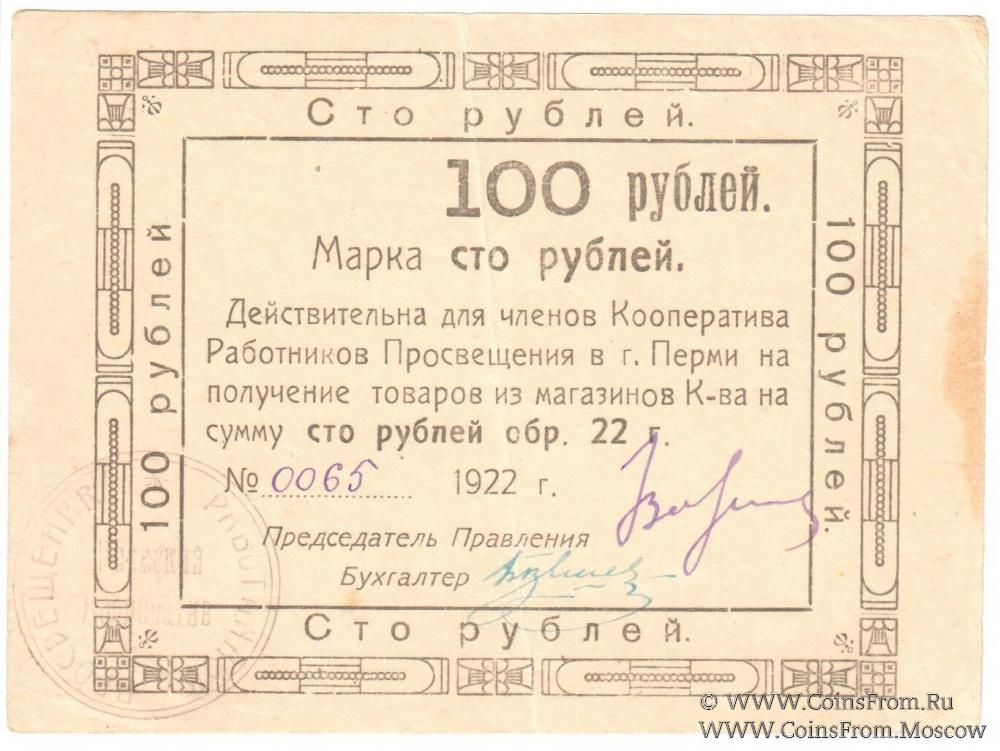 Марка 1922 г. Бумага белая. Кооператив Работников Просвещения в г. Перми.