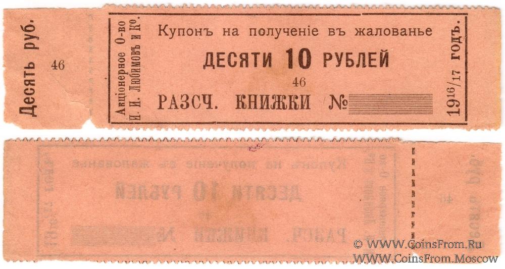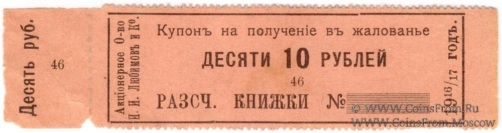 Купон на получение в жалованье. С корешком. Расчетная книжка б/н. Акционерное общество И.И. Любимов и Ко.