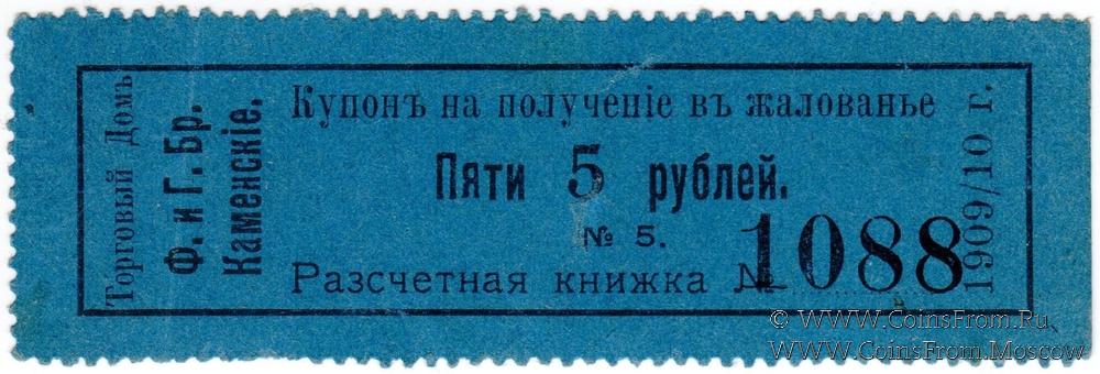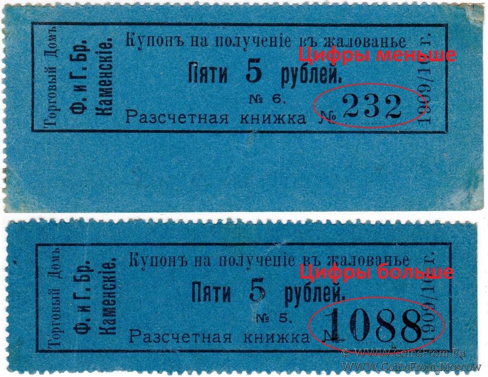 Купон на получение в жалованье. Расчетная книжка № 1088. Цифры номера больше. Торговый дом Ф. и Г. братья Каменские.