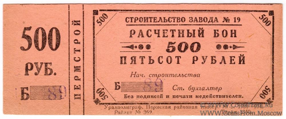 Расчетный бон. Серия Б (розовые). Бланк с купоном. Строительство завода №19. ПЕРМСТРОЙ.