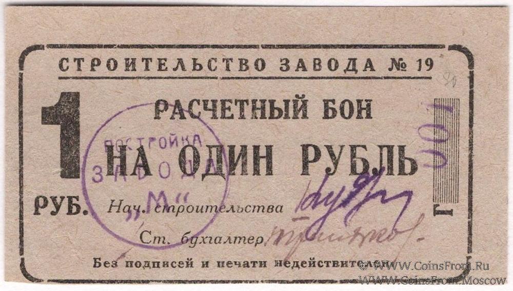 Расчетный бон. Серия Г (серые). Строительство завода №19. ПЕРМСТРОЙ.