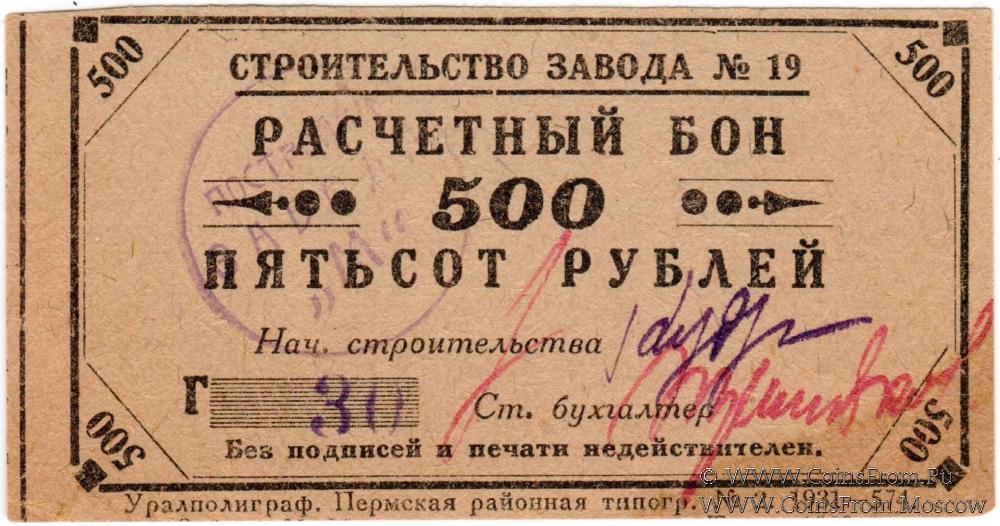 Расчетный бон. Серия Г (бежевые). Законченный. Строительство завода №19. ПЕРМСТРОЙ.
