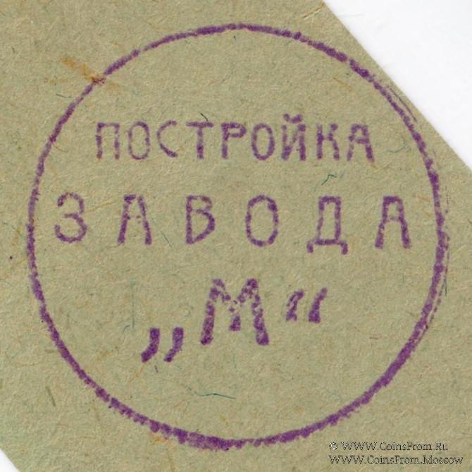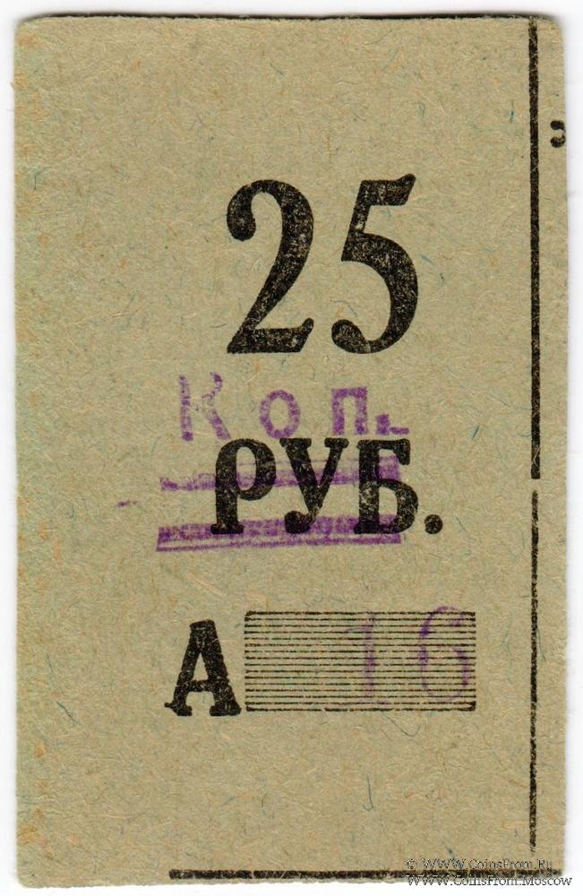 Расчетный бон. Серия А (зелёные). На корешке 25 рублей. На реверсе печать. Строительство завода №19. ПЕРМСТРОЙ.