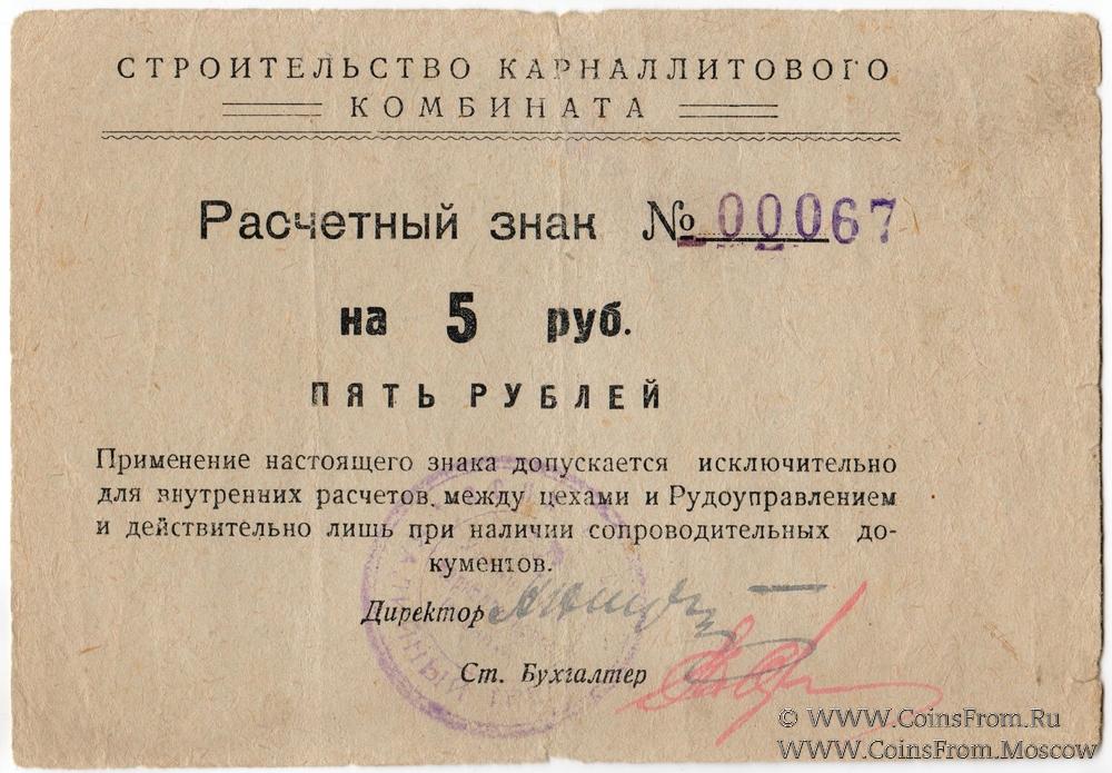 Расчетный знак без даты. Строительство карналлитового комбината.