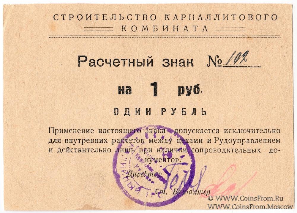 Расчетный знак без даты. Номер от руки. Строительство карналлитового комбината.