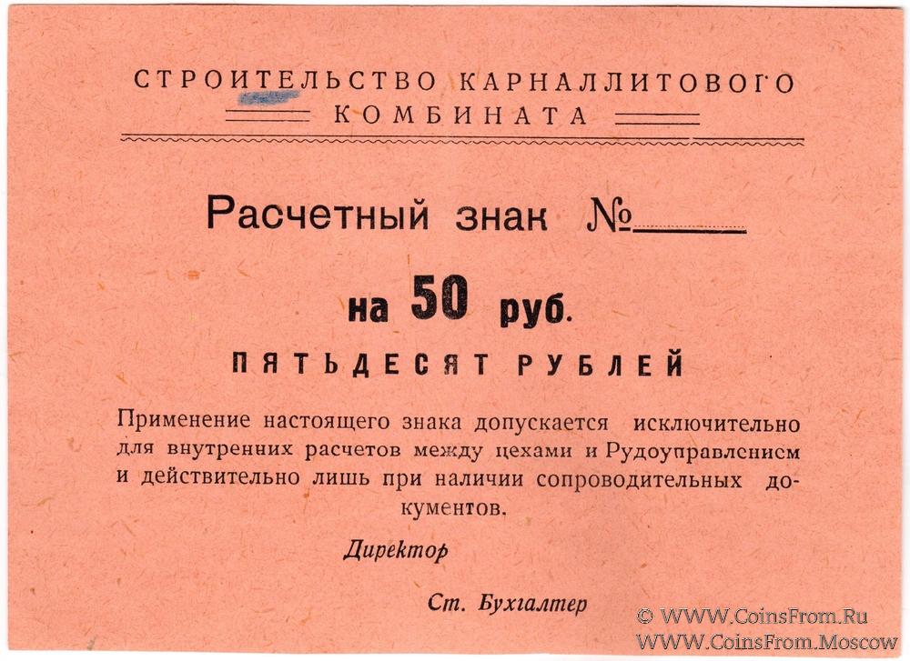 Расчетный знак без даты. Бланк. Строительство карналлитового комбината.