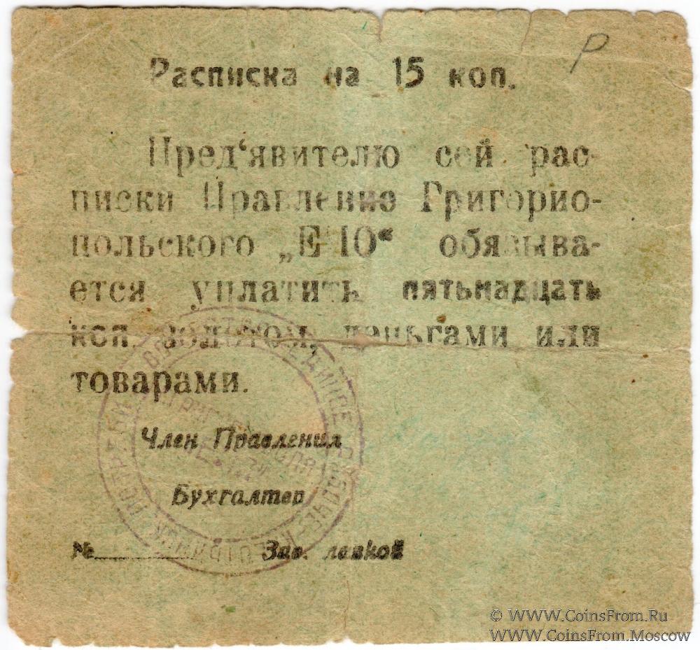 Печать круглая: "Г.ГРИГОРИОПОЛЯ "ЕПО"" (по центру в две строки) / "ЕДИНОЕ РАБОЧЕ-КРЕСТЬЯНСК. ПОТРЕБИТ. ОБЩЕСТВО *" (по кругу).