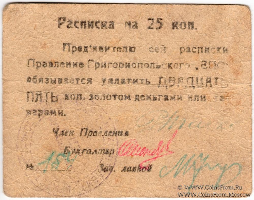 Печать круглая: "Г.ГРИГОРИОПОЛЯ "ЕПО"" (по центру в две строки) / "ЕДИНОЕ РАБОЧЕ-КРЕСТЬЯНСК. ПОТРЕБИТ. ОБЩЕСТВО *" (по кругу).