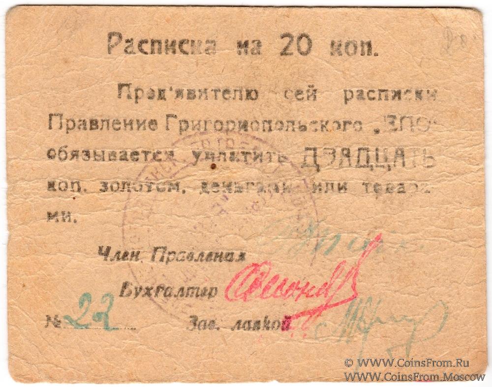 Печать круглая: "Г.ГРИГОРИОПОЛЯ "ЕПО"" (по центру в две строки) / "ЕДИНОЕ РАБОЧЕ-КРЕСТЬЯНСК. ПОТРЕБИТ. ОБЩЕСТВО *" (по кругу).